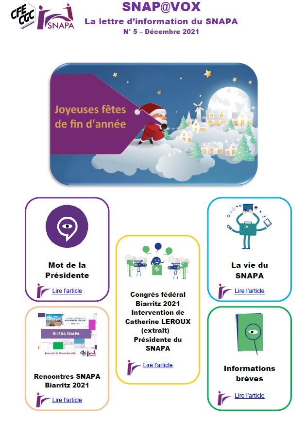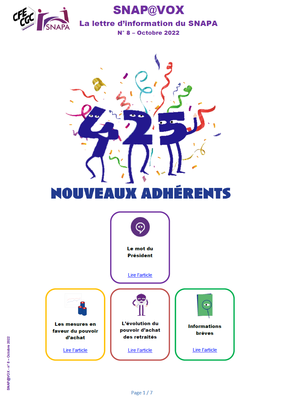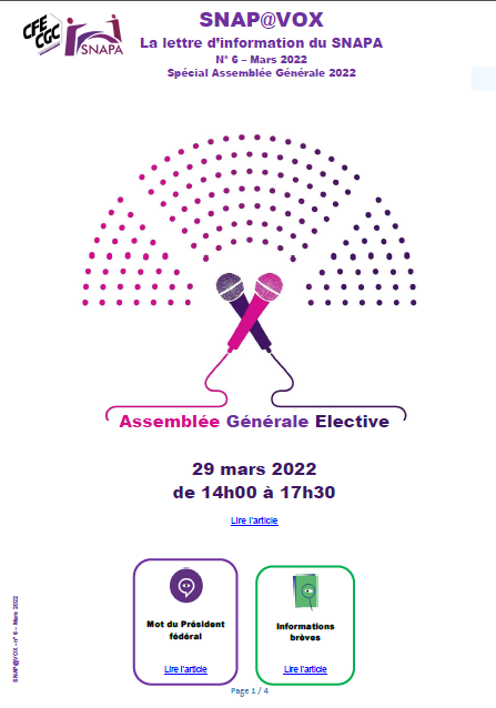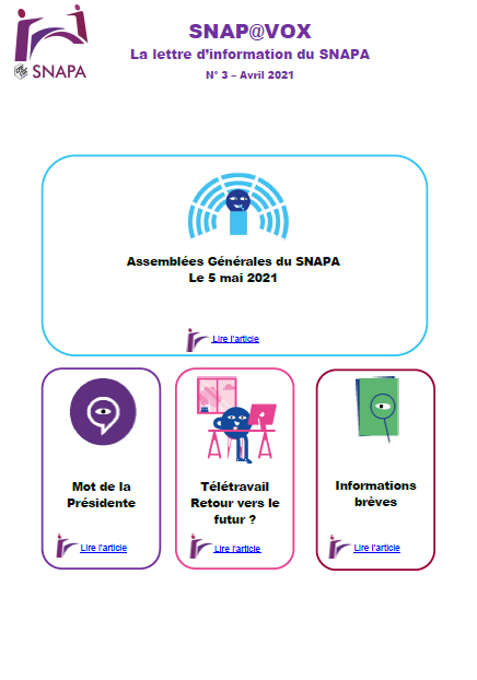 Depuis début 2020, le SNAP@VOX est la lettre d’information destinée à nos adhérents.