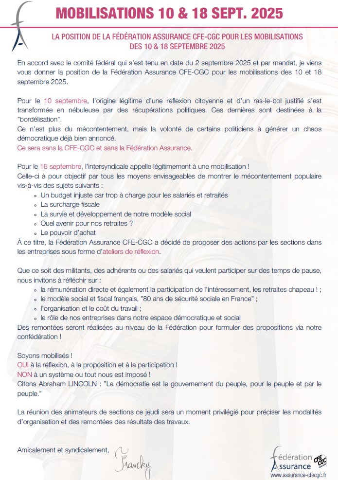 • Fédération Assurances CFE-CGC – Communiqué de Presse